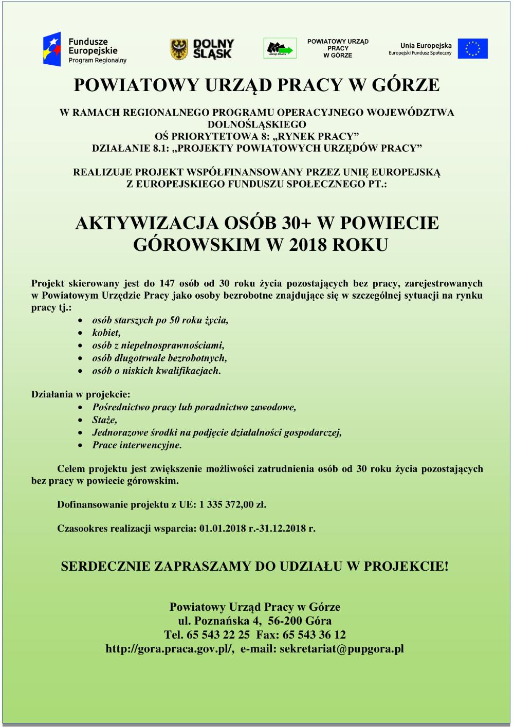 Projekt pt. "Aktywizacja osób 30+ w powiecie górowskim w 2018 roku" w ramach Działania 8.1 RPO