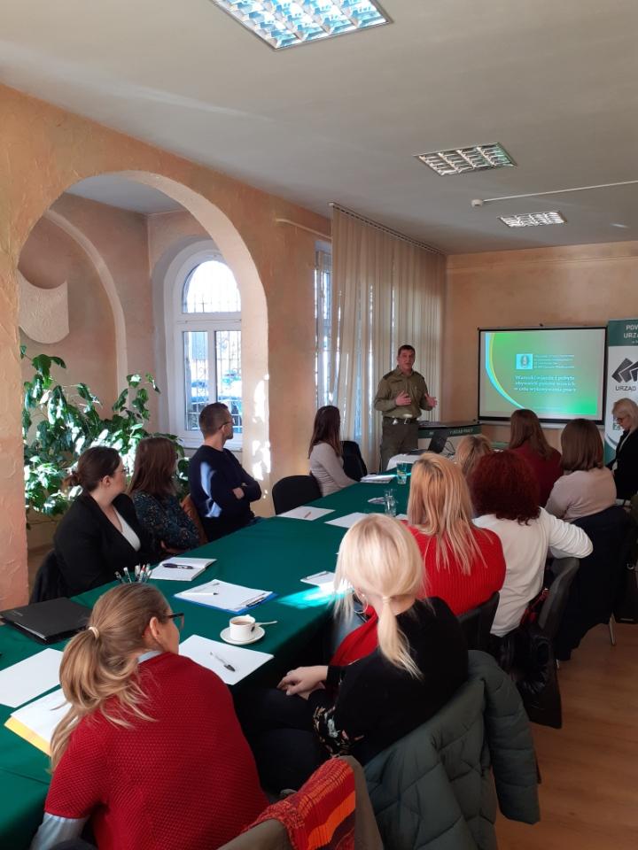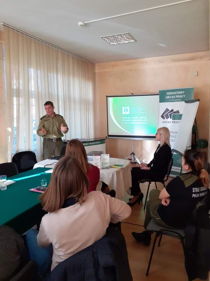 Prowadzący Warsztaty Kierownik Zespołu ds. kontroli legalności zatrudnienia Pan Jacek Starszuk z Służby Granicznej w Gorzowie Wlkp. wraz z pracownikiem Powiatowego Urzędu Pracy w Międzyrzeczu Panią Ewą Dowhan omówili metody zatrudniania, warunki wjazdu i pobytu Cudzoziemca w Polsce, rodzaje dokumentów umożliwiających podjęcie pracy, legalność zatrudnienia Cudzoziemców oraz obowiązki pracodawców.