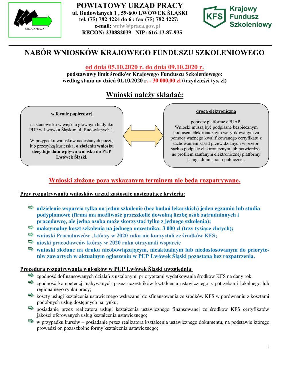NABÓR WNIOSKÓW KRAJOWEGO FUNDUSZU SZKOLENIOWEGO