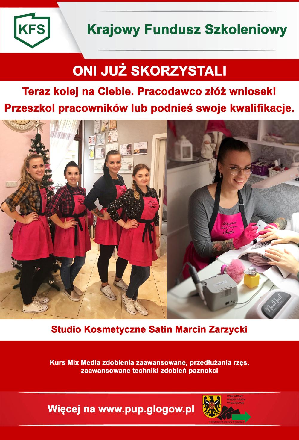 PRACODAWCO PODNIEŚ SWOJE KWALIFIKACJE LUB PRZESZKOL PRACOWNIKÓW Z PIENIĘDZY URZĘDU PRACY. Z KFS dotychczas (od 2014 r.) skorzystało 65 pracodawców, a przeszkoliliśmy 899 osób, Dofinansowania otrzymali m.in: Komunikacja Miejska w Głogowie, Przedszkole Niepubliczne Kubuś Puchatek, Studio Kosmetyczne SATIN, Przedsiębiorstwo Antrans, E-Towers Famaba S.A., NTI, Fuego Bar, Praktyka Lekarska B. Bobójć