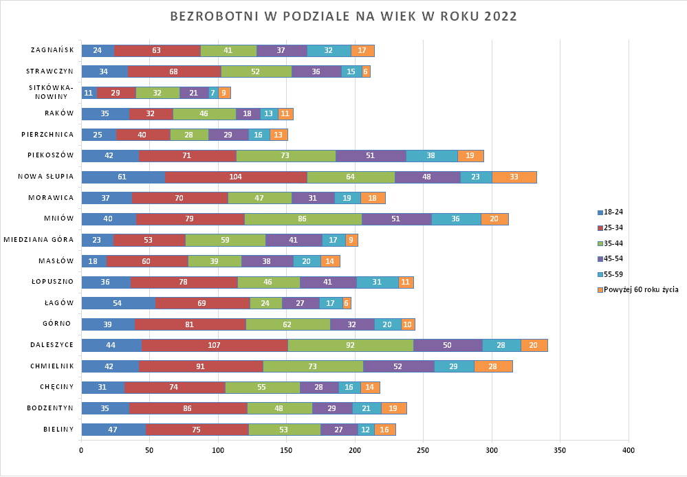 Statystyki - stan bezrobocia w gminach 2022 - Powiatowy Urząd Pracy w Kielcach