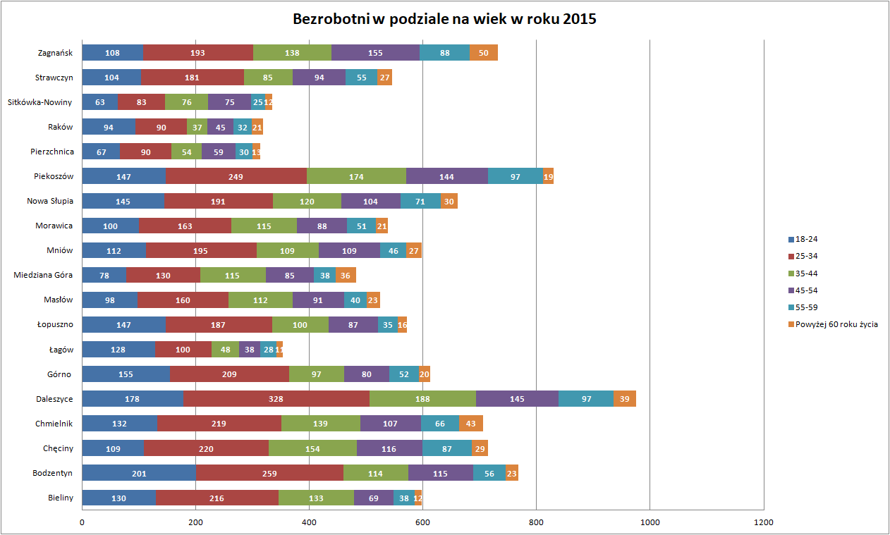 Statystyki - Stan bezrobocia w gminach 2015 - Powiatowy Urząd Pracy w Kielcach
