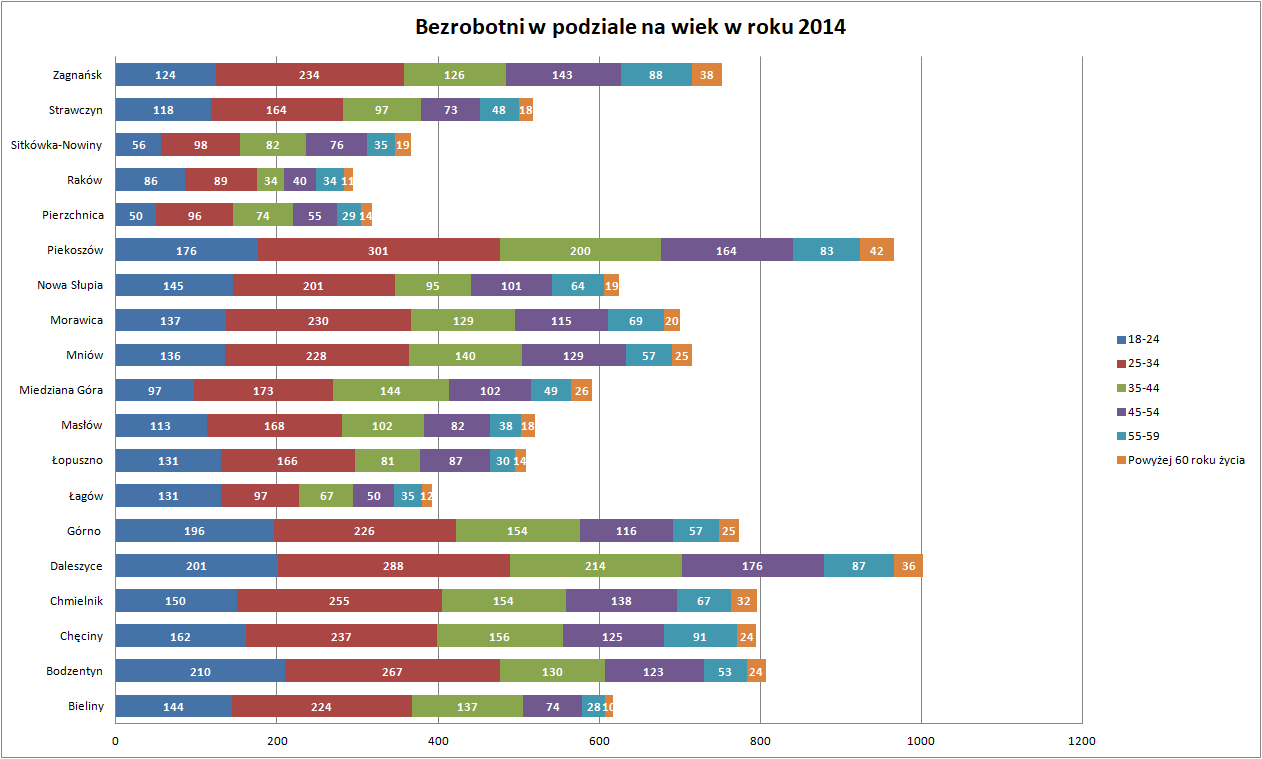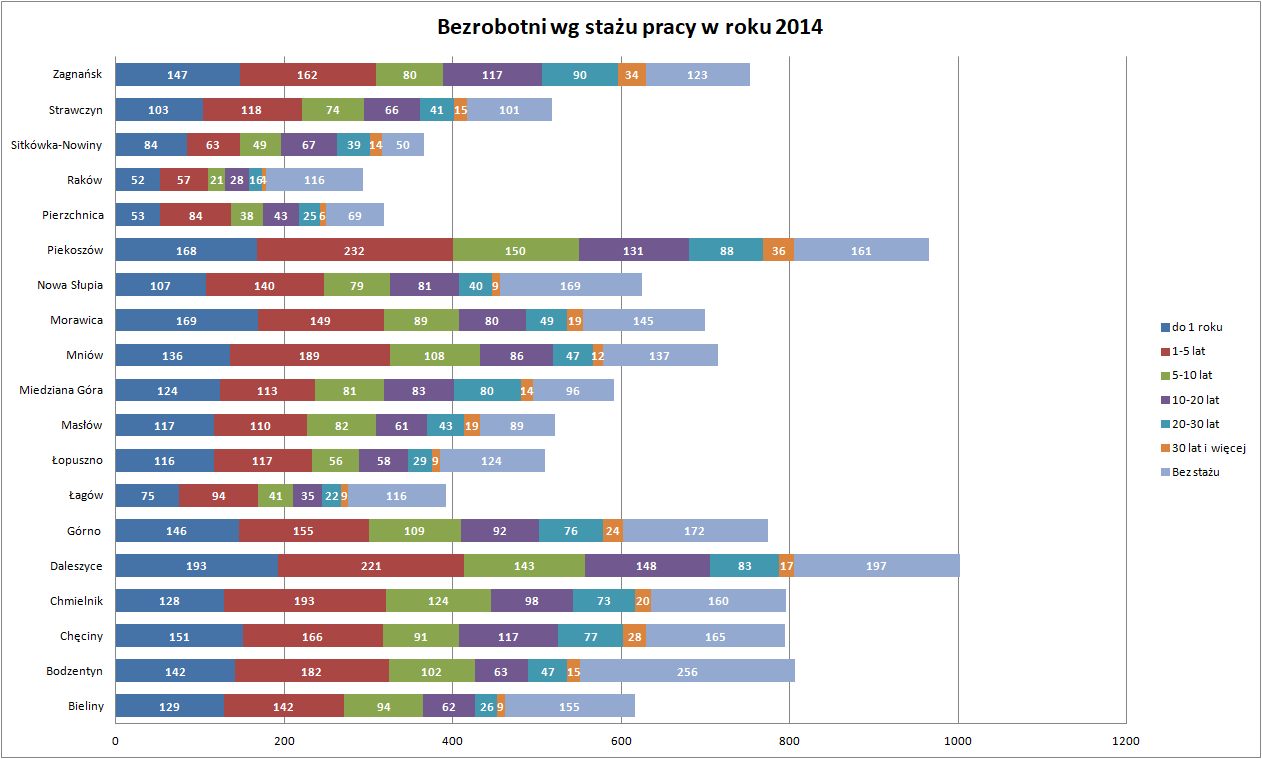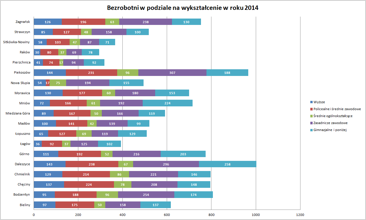 Statystyki - Stan bezrobocia w gminach 2014 - Powiatowy Urząd Pracy w Kielcach