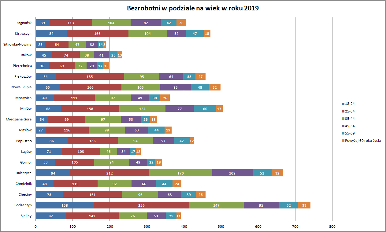 Statystyki - Stan bezrobocia w gminach 2019 - Powiatowy Urząd Pracy w Kielcach