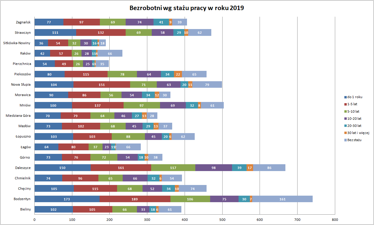 Statystyki - Stan bezrobocia w gminach 2019