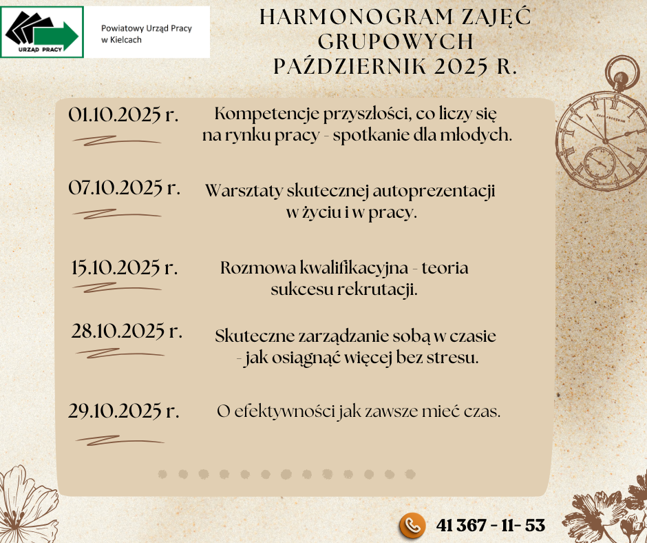 Miejsce i godzina: Sala 130 w Powiatowym Urzędzie Pracy w Kielcach, godzina 10:00;