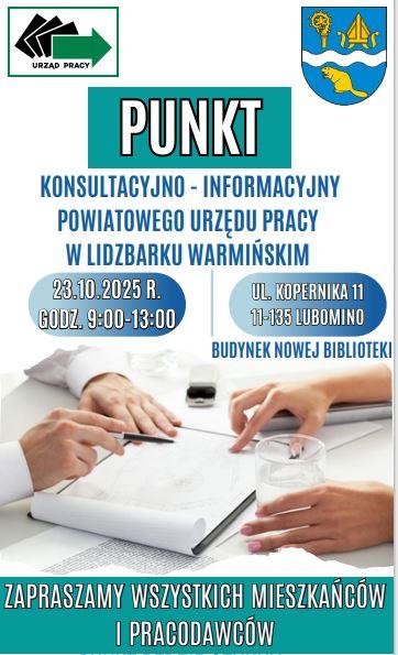 UWAGA, ZMIANA! W październiku wyjątkowo zapraszamy Was do Punktu Konsultacyjno-Informacyjnego w Lubominie 23 października 2025 r. (czwartek)!