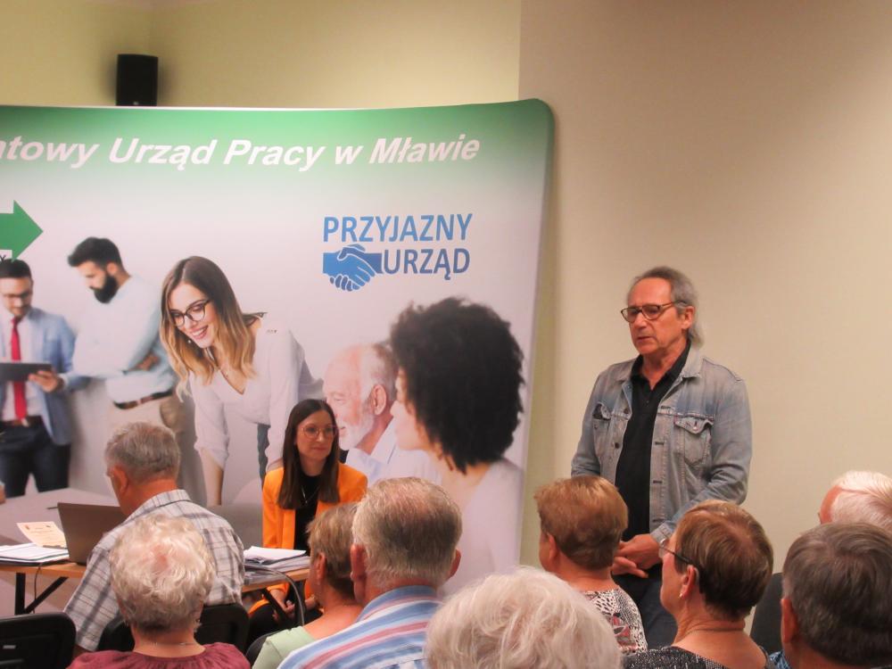Pan Jerzy Grzebski zapoznał uczestników z ofertę edukacyjną Uniwersytetu Trzeciego Wieku w Mławie, przedstawicielki ze Stowarzyszenia na Rzecz wspierania Aktywności Seniorów „AS" opowiedziały o działalności swojej grupy.