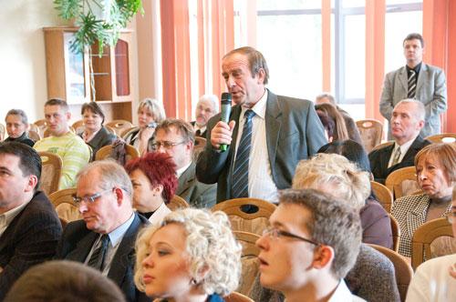 Pierwsza część konferencji poświęcona była sprawom gospodarczym. Działania samorządu województwa lubuskiego w zakresie rozwoju gospodarczego przedstawił Marszałek Województwa – Pan Marcin Jabłoński, a zakres przygotowanego do wdrożenia przez Rząd pakietu deregulacyjnego, czyli rozwiązań administracyjnych ułatwiających funkcjonowanie firm – Pan Krzysztof Galas, dyrektor do spraw regulacji gospodarczych w Ministerstwie Gospodarki. Złoty Herb Powiatu Sulęcińskiego będący wyrazem uznania i wdzięczności za zasługi dla powiatu otrzymał Krzysztof Kononowicz – Prezes Związku Pracodawców „Przedsiębiorczość" z Sulęcina i jednocześnie Prezes firmy LEKS.