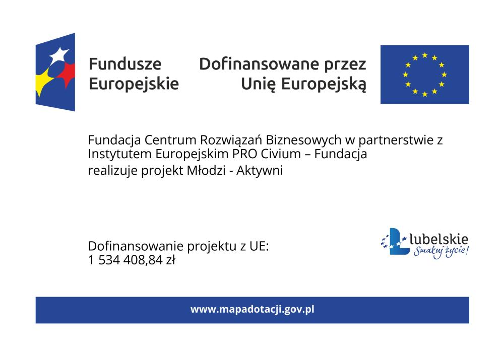 Projekt realizowany jest przez Fundację Centrum Rozwiązań Biznesowych w partnerstwie z Instytutem Europejskim PRO CIVIUM - Fundacja w Lublinie.