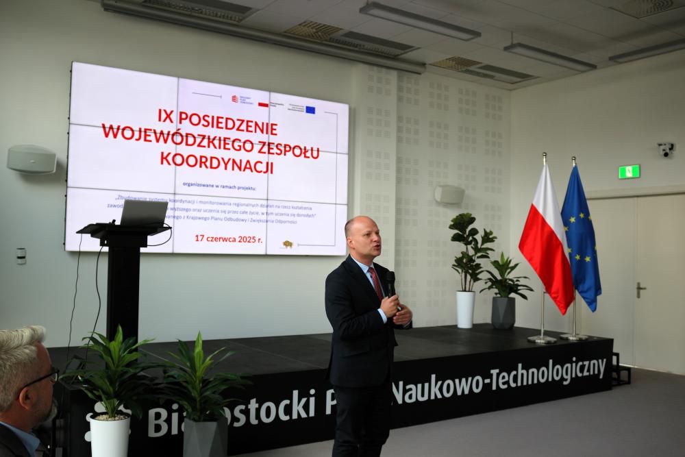 W dniu 17 czerwca 2025 r. miało miejsce dziewiąte posiedzenie Wojewódzkiego Zespołu Koordynacji w ramach projektu wspierającego uczenie się przez całe życie. Spotkanie otworzył Hubert Ostapowicz, Dyrektor Wojewódzkiego Urzędu Pracy w Białymstoku. Uczestnicy zapoznali się z inicjatywami WUP, w tym projektami w ramach Priorytetu VII Funduszy Europejskich dla Podlaskiego.